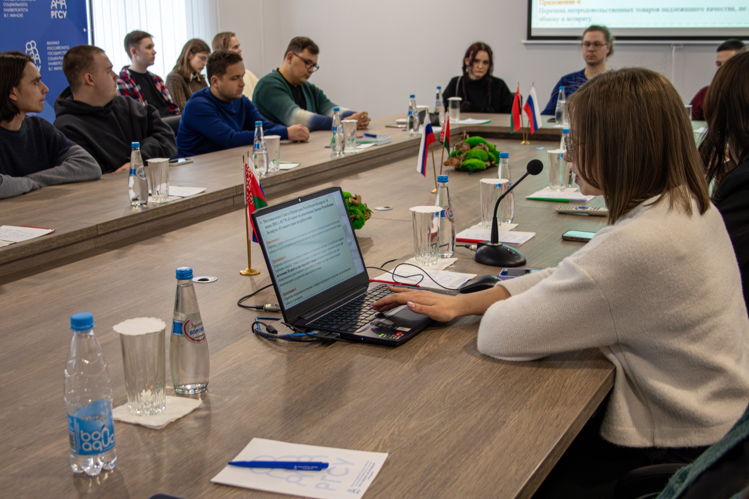 Гостям напомнили о ключевых правах потребителей на получение качественных товаров, услуг и работ, закреплённых в Законе Республики Беларусь «О защите прав потребителей». Теоретические сведения сопровождались реальными примерами досудебной и судебной защиты прав потребителей.